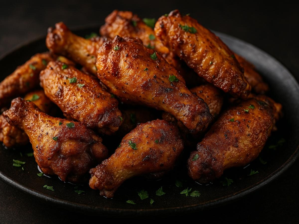 Куриные крылья — недооценённое мясо, которое при правильном приготовлении способно удивить даже гурманов. Этот рецепт превращает простое блюдо в домашний шедевр: нежная мякоть внутри и хрустящая, ароматная корочка снаружи. Всё, что нужно — немного специй, капля масла и секретный ингредиент — кукурузный крахмал, который делает поверхность особенно румяной. Такое угощение подходит и для семейного ужина, и для праздничного стола. Главное — не передерживать крылья в духовке и не жалеть приправ: аромат специй сделает своё дело. Ингредиенты Куриные крылья: 1 кг. Куркума: 1/4 ч. л. Паприка: 1 ч. л. Чеснок сушёный: 1 ч. л. Сушёная петрушка: 1 ч. л. Кукурузный крахмал: 1 ст. л. Растительное масло: 3 ст. л. Соль и чёрный перец: по вкусу. Свежая петрушка: для украшения. Как приготовить Подготовка мяса: разрежьте каждое крыло на две части, промойте и обсушите. Маринад: смешайте куркуму, паприку, чеснок, петрушку, соль и перец. Добавьте крылья и тщательно перемешайте. Отдых: оставьте при комнатной температуре на 30 минут, чтобы мясо впитало аромат специй. Хрустящая текстура: всыпьте кукурузный крахмал, перемешайте — он создаст золотую корочку. Запекание Разделите крылья по размеру: плечевая часть готовится дольше. Выложите на застеленный пергаментом противень, смазанный маслом. Выпекайте при 190 °C: мелкие части — около 45 минут, крупные — чуть дольше. Через 20 минут переверните, чтобы подрумянились равномерно. Выложите готовые крылышки на большое блюдо, посыпьте зеленью.